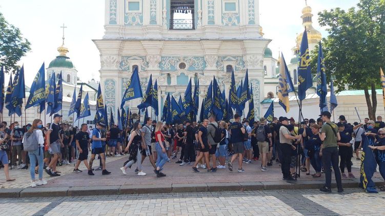 В четверг, 2 июля, в Киеве началось шествие "Национального Корпуса" и союзных ему организаций под названием "Требование нации - запрет пророссийских организаций".