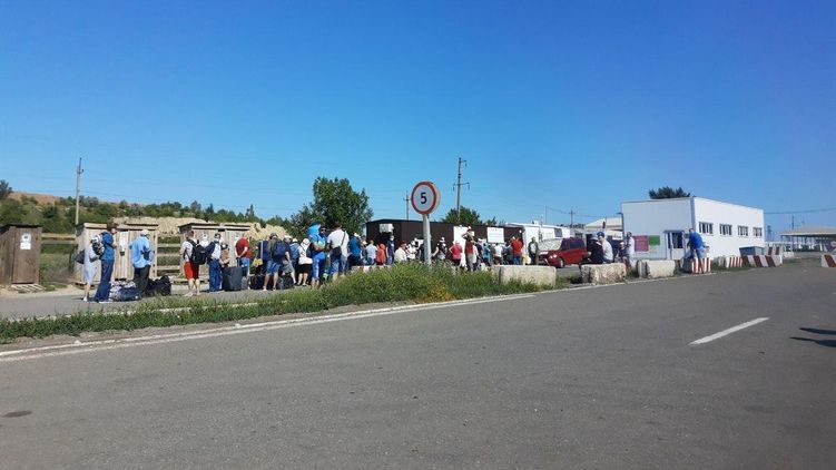 На КПВВ Новотроицкое люди в очереди, чтобы попасть в "ДНР". Фото: Telegram