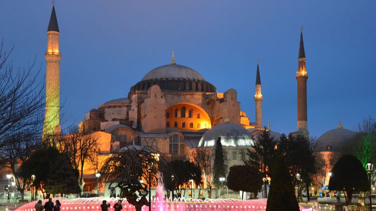 Собор Святой Софии был возведен императором Византии Юстинианом и открыт в 537 году. Собор оставался самым большим христианским храмом в мире более тысячи лет, пока не был перестроен турками в 1453 году в мечеть Айя-София после падения Константинополя. В 1934 году основатель современной Турции Кемаль Ататюрк подписал декрет, превращающий мечеть в музей. Через несколько десятилетий он был включен в список всемирного наследия ЮНЕСКО.