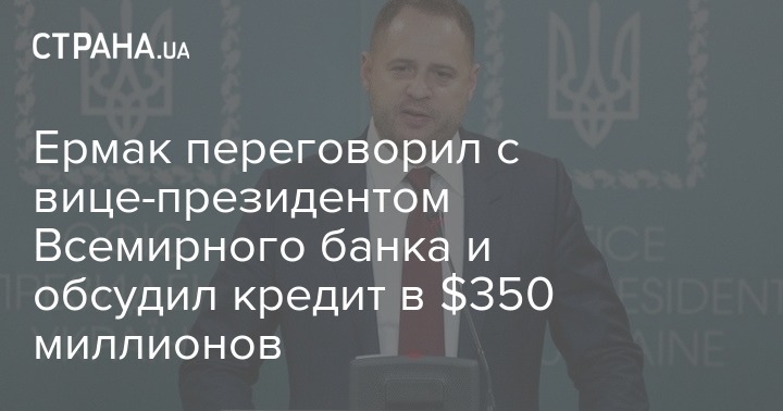 Ермак переговорил с вице-президентом Всемирного банка и обсудил кредит в $350 миллионов