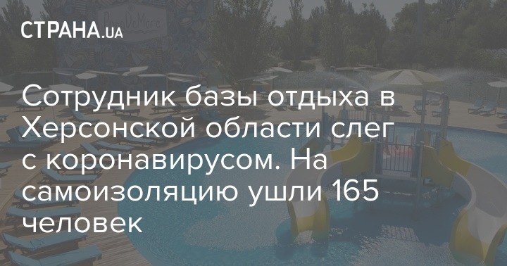 На базе отдыха в селе Херсонской области выявили первого зараженного коронавирусом. Им оказался 26-летний работник учреждения. На данный момент на базе отдыха находятся 165 человек, все они соблюдают самоизоляцию под надсмотром врачей.