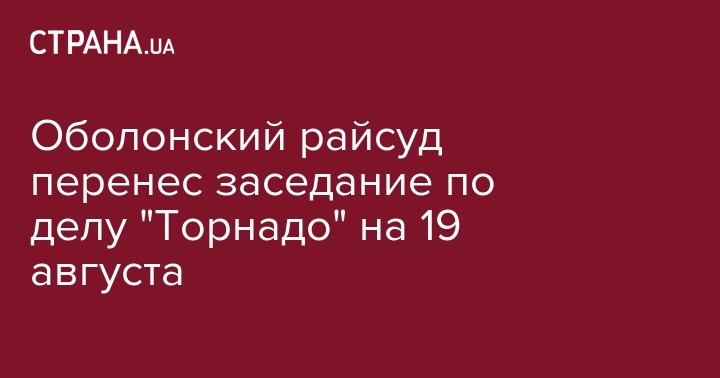 Оболонский районный суд, где сегодня рассматривалось дело обвиняемых в тяжких преступлениях в зоне АТО бойцов роты милиции "Торнадо", принял решение о переносе заседания на пятницу, 19 августа. Об этом сообщает корреспондент "Страны" из зала суда.