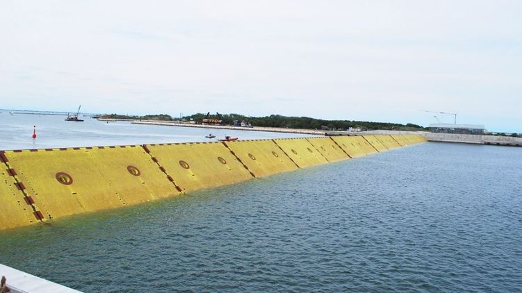 Система под названием Mose сжимает воздух в случае прилива, что поднимает шлюзовые ворота, которые блокируют потенциальное наводнение.