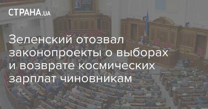 Президент Украины Владимир Зеленский отозвал с повестки дня Верховной Рады законопроекты об отмене ограничений размера зарплат чиновников и проект постановления о проведении местных выборов 25 октября.