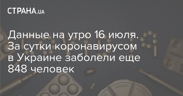 По состоянию на утро четверга, 16 июля, в Украине коронавирус подтвердился еще у 848 человек. Общее число зараженных таким образом достигло отметки 56 455 с начала эпидемии. Вчера, 15 июля общее число зараженных в нашей стране составляло 55 607 человек