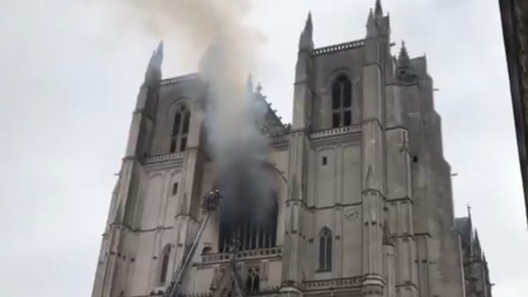Во Франции загорелся собор Святых Петра и Павла. Видео: twitter.com/StephanePajot44