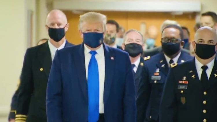 Напомним, пезидент США Дональд Трамп впервые с начала пандемии коронавируса появился на публике в защитной маске. Он посетил Национальный военно-медицинский центр имени Уолтера Рида недалеко от Вашингтона и удивил прессу своим видом. Маска президента тканевая, темно-синяя, в ее левой нижней части нанесена золотая президентская печать. "Я думаю, это замечательно - носить маску. Я никогда не был против масок", - заявил он на встрече.