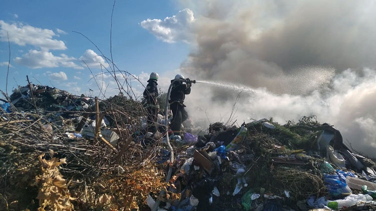 Пожарные продолжают тушить свалку под Днепром. Фото: ГСЧС