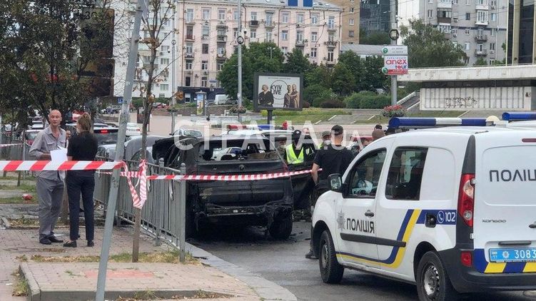 Автомобиль, который днем 22 июля пылал на Большой Васильковской в центре Киева, сначала взорвался, а потом загорелся.