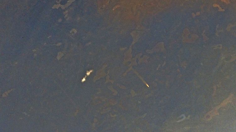 Фото запуска ракеты-носителя "Союз-2.1а" из космоса, фото: twitter.com/ivan_mks63