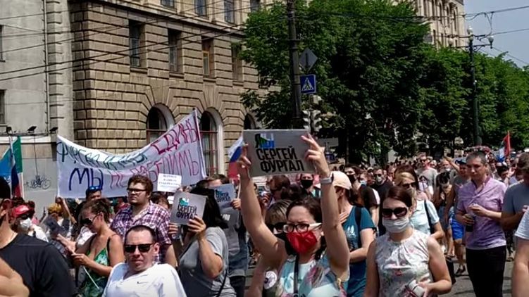 В субботу, 25 июля, в Хабаровске прошла новая акция протеста в поддержку арестованного экс-губернатора Сергея Фургала. По различным данным, на улицы вышли от 6 500 до 40 000 россиян.