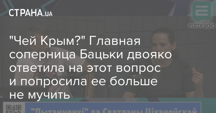 Кандидат в президенты Беларуси Светлана Тихановская в ходе своей предвыборной кампании все-таки дала прямой ответ на вопрос "Чей Крым?".