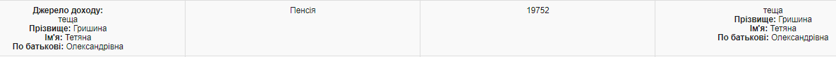 В декларации указано, что теща пенсионерка и она получила 19 752 грн пенсии за год (это 1 646 грн в месяц). Других ее источников дохода Шабунин в своей декларации не указал.