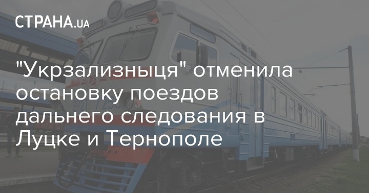 "Укрзализныця" отменила остановку ряда поездов дальнего следования в Луцке и Тернополе, которые попали в "красную зону" карантина с 1 августа.
