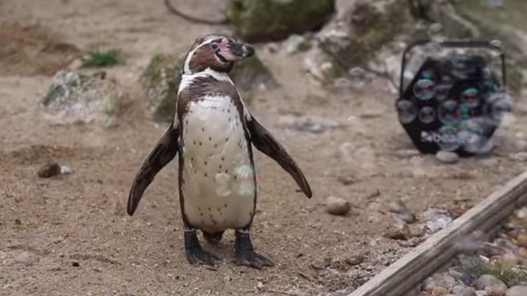 В британском зоопарке загрустивших пингвинов развеселили машиной для мыльных пузырей. Видео