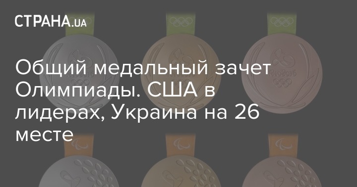 Общий медальный зачет Олимпиады. США в лидерах, Украина на 26 месте