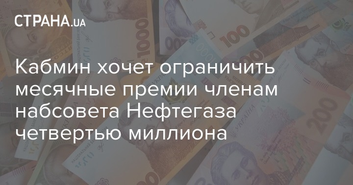 Также правительство намерено установить максимально допустимый размер базового месячного вознаграждения для членов набсовета "Нефтегаз" в размере 246 840 гривен.