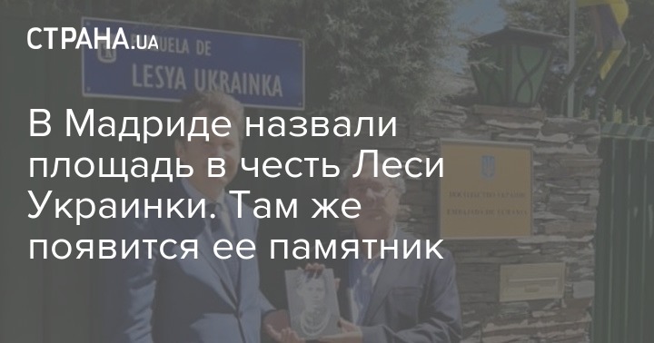 "В честь великой дочери украинского народа и ее вклада в развитие мировой культуры мэрия города Мадрида присвоила имя Леси Украинки площади в столице Испании, на которой расположен посольство Украины, а также поддержала предложение дипломатического учреждения Украины относительно установления на этой площади памятника поэтессе ", - сообщает посольство.