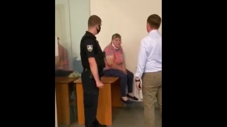 На записи видно, как женщина в приемной Офиса генпрокурора разговаривает с сотрудником, который говорит, что в случае, если женщина сломает стол, они вызовут полицию.
