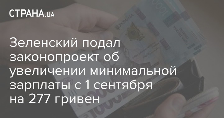 Зеленский подал законопроект об увеличении минимальной зарплаты с 1 сентября на 277 гривен