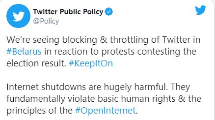 20:15 Твитер фиксирует попытки блокировки соцсети на территории Беларуси.