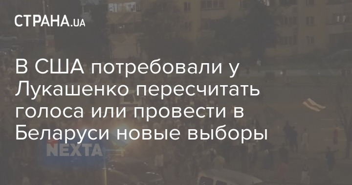 В Соединенных Штатах Америки призвали Беларусь провести новые выборы. Как альтернатива новым выборам - пересчет голосов по тем, которые провели в воскресенье, 9 августа.