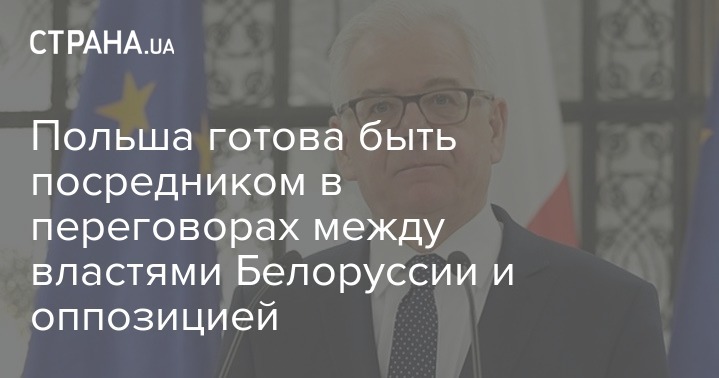 Министр иностранных дел Яцек Чапутович заявил, что Польша готова выступить посредником между властью и оппозицией в Беларуси на фоне массовых беспорядков после выборов президента в республике. По его словам, у Польши есть опыт в таких вопросах.