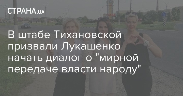 В штабе Светланы Тихановской призвали белорусские власти не применять насилие против участников протеста и начать диалог для "мирной передачи власти народу".