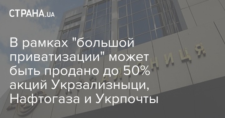 На фоне сегодняшнего анонса "большой приватизации", Кабмин заявил о возможной продаже до 50% акций НАК "Нафтогаз Украины", ПАО "Укрзализныця" и ГП "Укрпочта".