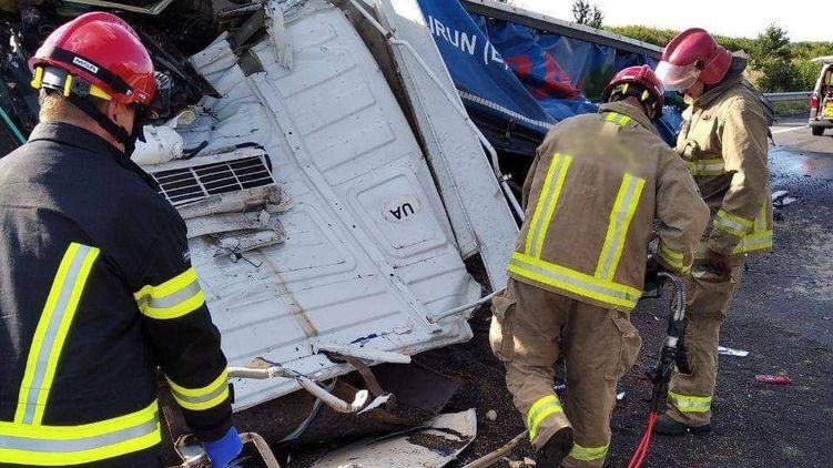 На трассе Киев-Одесса столкнулось два грузовика, в результате чего погибли молодые водитель и пассажир одного из участников ДТП, которых пришлось извлекать специалистам.