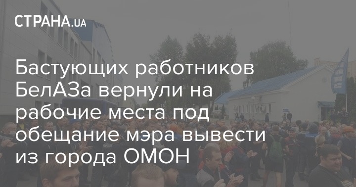 Работники расположенного под Минском в городе Жодино автогиганта БелАЗ вернулись на свои рабочие места после нескольких часов забастовки в знак протеста к результатам президентских выборов в Беларуси. Об этом сообщает телеграм-канал "TUT.BY новости"ю