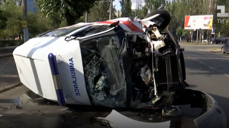В Одессе автомобиль "скорой", которая принадлежит Нацгвардии, угодил в ДТП. Карета "скорой" столкнулась с легковушкой и перевернулась на бок. На тот момент в "скорой" были двое: водитель и фельдшер. Они получили травмы.