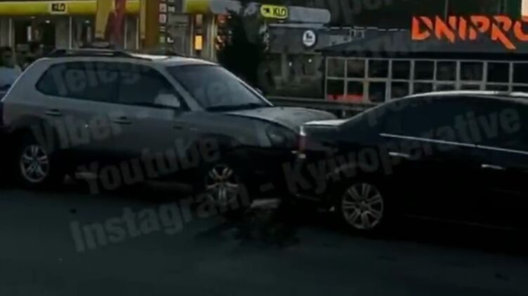 Появилось видео с места ДТП под Киевом, в котором пять автомобилей выстроились друг за другом