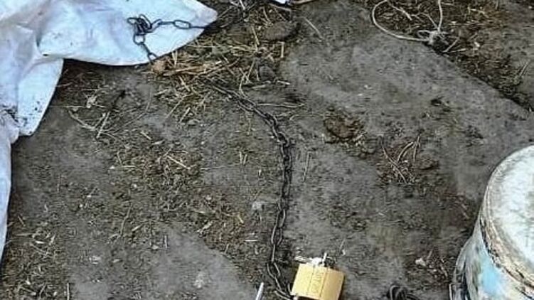Замок и цепь, на которой держали девушку. Фото: Нацполиция