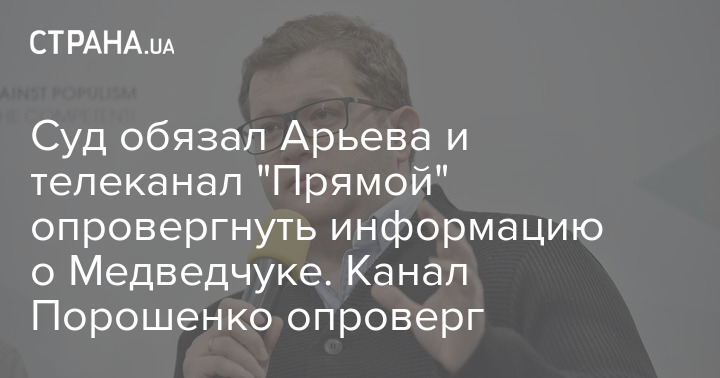 Народный депутат и председатель политсовета "Оппозиционной платформы - За жизнь" Виктор Медведчук выиграл суд у телеканала "Прямой" (принадлежит экс-президенту Петру Порошенко) и журналиста Владимира Арьева, который является нардепом от "Евросолидарности". Иск касался защиты чести, достоинства, деловой репутации и опровержения недостоверной информации.