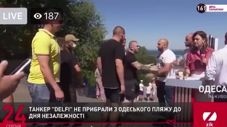 Представители "Национального корпуса" напали на съемочную группу телеканала "Zik" во время съемок сюжета в Одессе в понедельник, 24 августа, в День Независимости Украины.