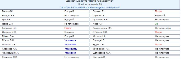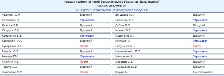 Против проголосовали Кучеренко, Пузийчук, Цимбалюк, Лабунская. Воздержались - Волынец, Власенко, Кабаченко, Немыря, Ивченко, Наливайченко, Николаенко.