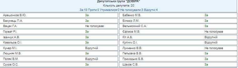 • Воздержались Бужанский, Демченко, Касай, Колев, Лерос, Микиша, Черный, Шевченко.