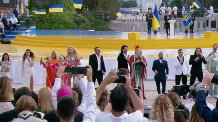 Напомним, концерт "песенная история современной Украины" состоялся в рамках мероприятий празднования 29-го Дня Независимости. Песню "Вахтерам" группы "Бумбокс" исполнили "Время и Стекло", а "Там, где нас нет" "Океана Эльзы" - хор и Верка Сердючка.