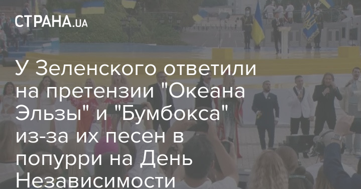 В Офисе президента ответили на претензии групп "Бумбокс" и "Океан Эльзы", которые заявили, что не давали разрешения на использование своих песен во время концерта "Песенная история современной Украины" ко Дню независимости.