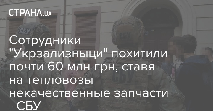 Сотрудники "Укрзализныци" похитили почти 60 млн грн, ставя на тепловозы некачественные запчасти - СБУ