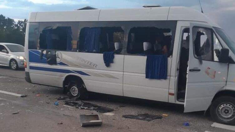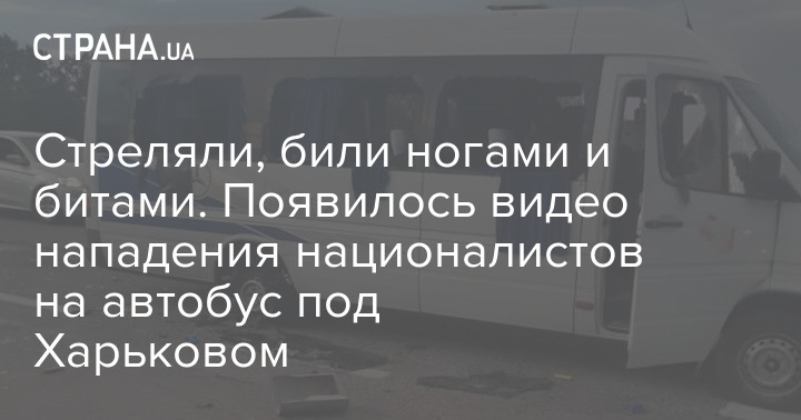 В сети появилось видео момента нападения на автобус активистов из организации "Патриоты - За жизнь" под Харьковом.