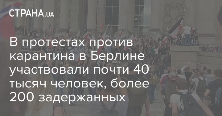 В субботу, 29 августа, в акции протеста против карантинных ограничений в Берлине, во время которой протестующие пошли на штурм Рейхстага, приняли участие более 38 тысяч человек. Более 200 из них были задержаны.