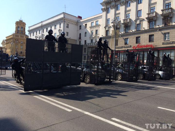 14:33 Власти в Минске вывели на улицу вот такую технику. Движущиеся стены.