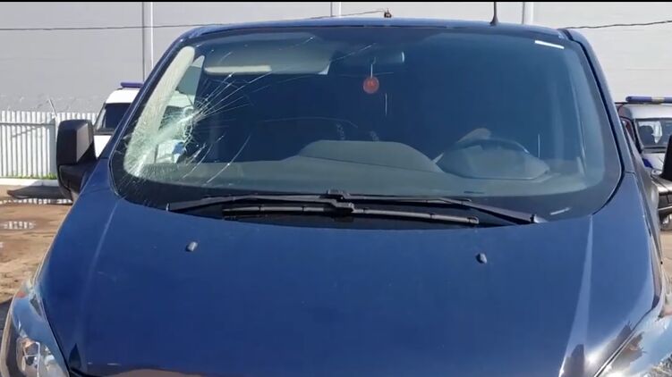Протестующие разбили стекло автомобиля правоохранителей. Скриншот из видео