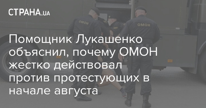 Помощник Лукашенко объяснил, почему ОМОН жестко действовал против протестующих в начале августа