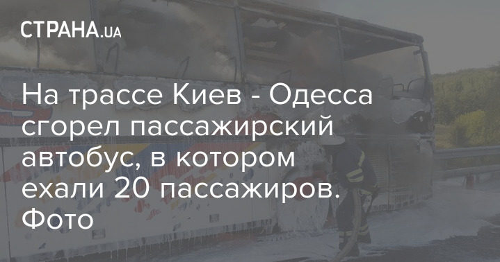 На трассе Киев - Одесса сгорел пассажирский автобус, в котором ехали 20 пассажиров. Фото