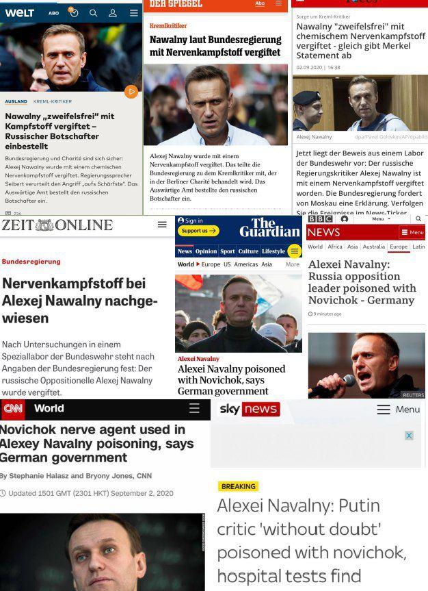 Тем не менее после заявления федерального правительства западные СМИ буквально взорвались заголовками об отравлении "путинского критика" Навального "Новичком".