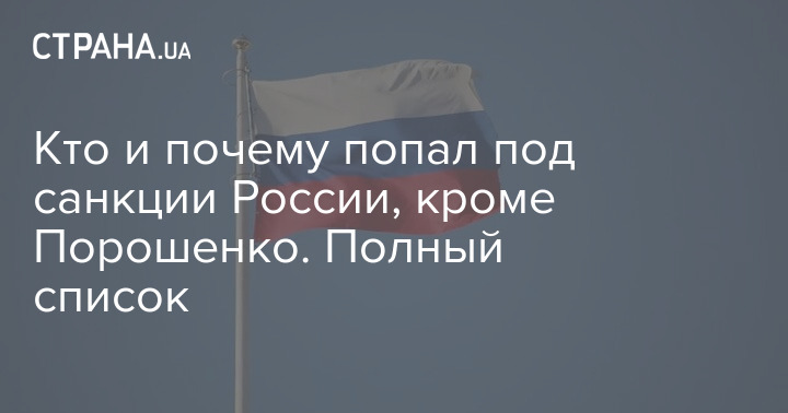 Россия расширила экономические санкции в отношении физлиц граждан Украины и внесла туда еще 42 человека. Среди них экс-президент Петр Порошенко, экс-лидер партии "Голос" Святослав Вакарчук, нардепы Кира Рудик, София Федына, Михаил Волынец, Яна Зинкевич, Сергей Магера, Муса Магомедов, экс-глава СБУ Валентин Наливайченко.