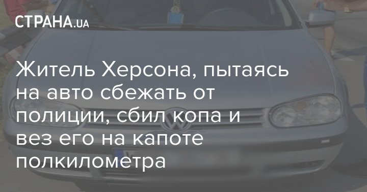 Житель Херсона, пытаясь на авто сбежать от полиции, сбил копа и вез его на капоте полкилометра